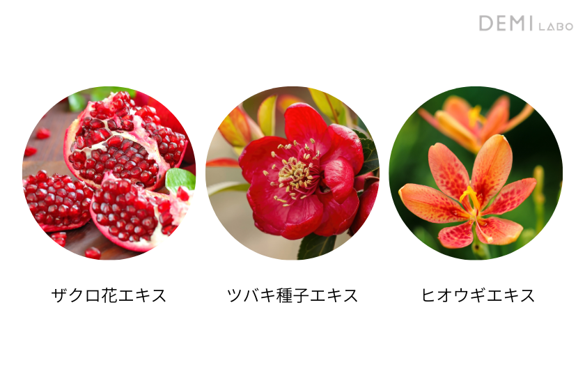 最近では、「女性ホルモン様成分」と呼ばれる、植物性の成分を配合した化粧品やサプリメントが注目されています。ザクロ花エキスやツバキ種子エキス、ヒオウギエキスなどがその代表です。